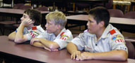 Assistant Scoutmaster Albert Mabus and some of his troop learn about varied jobs in the hospitality industry Fred W. Becker, dean of hospitality, explains the varied cookware in Le Jeune Chef's sprawling and busy kitchen Scouts listen intently as they're told the importance of math and communications skills in the hospitality field Ten members of Boy Scout Troop 622 in Turbotville working on their merit badges in cooking visited Penn College's School of Hospitality on Monday. The boys, accompanied by Assistant Scoutmaster Albert Mabus and two other chaperones, are required to learn about three positions in the food-service industry. They spent the morning at Eder's Ice Cream near Montoursville before touring the college's kitchens with Fred W. Becker, dean of hospitality, and learning about the rewards and hard work of culinary careers.