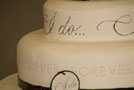 The grand-prize winner, by Erin Brown First-place design by Akacia Klick Hundreds of handmade pink roses decorated this rustic cake Painstaking lettering Participating students are joined by judges and instructor Sue Major, assistant professor of hospitality management/culinary arts Judging for the CalJava International Wedding Cake Competition was held Thursday morning in the PDC. Ten intricate cakes designed for the competition by students in an advanced cake decorating class were displayed the following day, attracting cash votes to determine the People's Choice Award. The funds raised through voting were given to the YWCA's Liberty House.