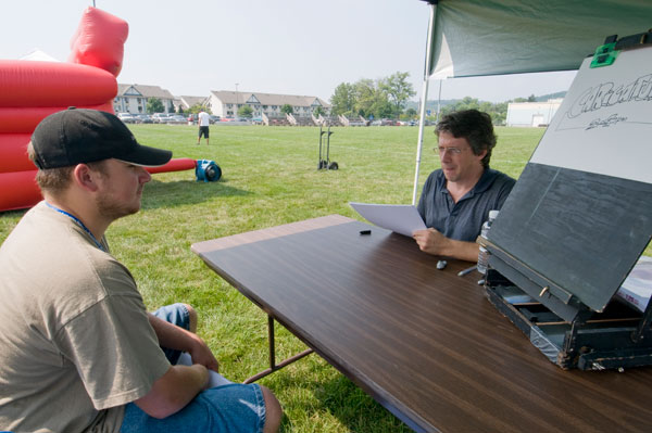 A caricaturist 'captures' a student's image during Sunday's festival.
