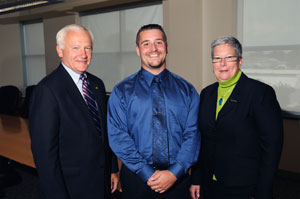 From left, state Sen. Gene Yaw, scholarship recipient Robert M. Dees and Pennsylvania College of Technology President Davie Jane Gilmour.Military veterans attending Pennsylvania College of Technology can apply for awards through a new scholarship at the college established in honor of state Sen. Gene Yaw, R-23.