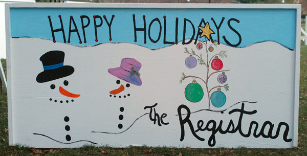 Pennsylvania College of Technology's extended family again sends its "Season's Greetings" to classmates and co-workers alike, colorfully plying imagination, artistry and elbow grease in bringing to life these 44 greeting cards on display outside the Breuder Advanced Technology and Health Sciences Center. The cards, some tongue-in-cheek and others heart-in-hand, will be lighted in a short ceremony at 7 p.m. Dec. 1, when winners will be announced in student and employee categories. In this photo gallery, the first 36 cards were created by campus organizations as listed; the final eight represent various college offices and departments.