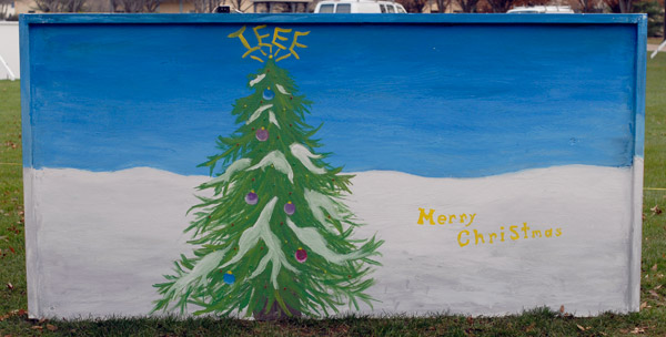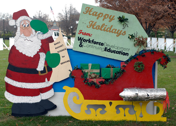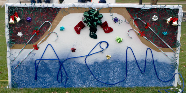 Students and employees again send seasonal wishes to their Pennsylvania College of Technology friends and colleagues, silently shouting "Happy Holidays" through 38 unique greeting cards on display outside the Breuder Advanced Technology and Health Sciences Center. Wielding paintbrushes, power tools, glue guns, boundless artistic energy – and a playful spirit of competition – groups recently assembled in General Services' Reach Road warehouse to give life to their colorful creations. The oversized cards will be lighted in a brief ceremony at 5 p.m. Nov. 30, when winners will be announced in both categories. The first 28 cards in this gallery were created by campus organizations; the final 10 represent the various college offices/departments that participated.