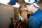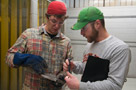 Alumnus Adam Steppe, right, inspects a weld during the postsecondary contest Competition spotlights young welders A hammer-wielding high school competitor chips away the slag from his weld American Welding Society judge Niles Oerhli checks a student's couponPenn College hosted the annual American Welding Society Welding Competition for secondary and postsecondary welding students Friday morning. Judged by representatives from the Central Pennsylvania Chapter of the American Welding Society, students from Penn College's welding majors competed against one another, followed by a competition among students from Williamsport Area High School, Columbia Montour Area Vocational-Technical School and SUN Area Technical School. Niles Oehrli, of Moody International; and Adam Steppe, '99 and '11, of High Steel Industries, judged the students' work. Winners will be announced during a banquet in April. Middle photos by Michael S. Fischer, student photographer