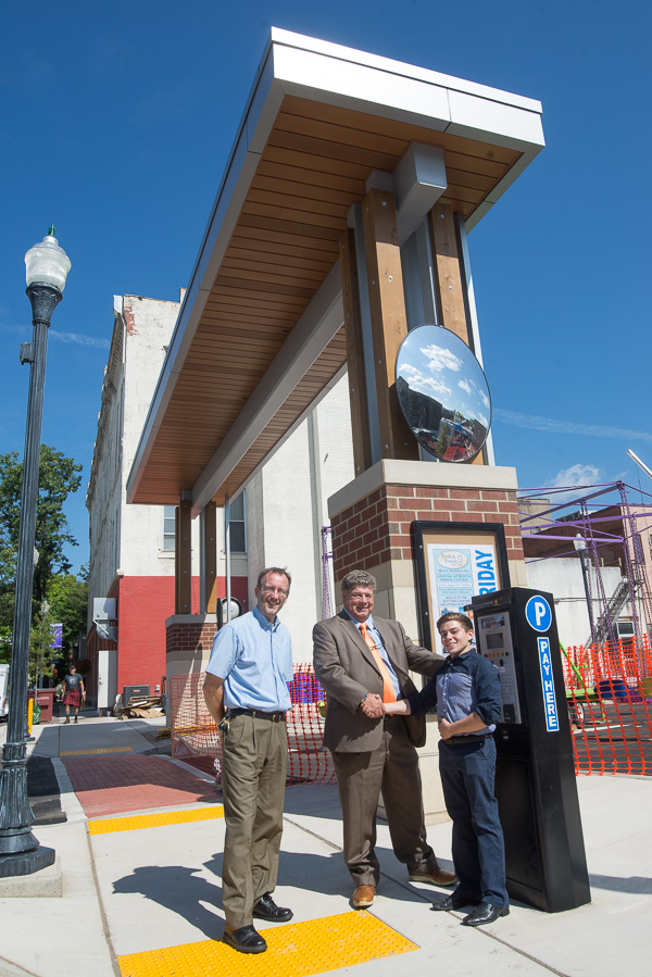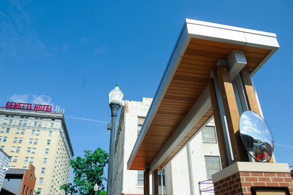 The new Midtown Landing Portal, created by L.R. Kimball's Michael Snyder (and inspired by student work), takes its place among such established landmarks as The Genetti Hotel.