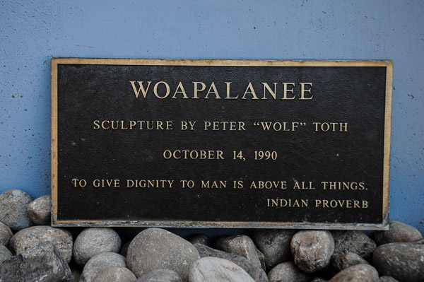 The original plaque, accompanying the Native American statue when it was installed in Brandon Park in 1990, has traveled with the chief to his new domain.