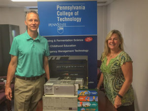 “In brewing, the GC can be used to analyze the purity of raw ingredients such as water, hops, yeast and grain,” Ingram said. “The purity and chemical signature of each of these ingredients is essential for making high-quality and highly reproducible beer. The GC can also be used to test beer at various stages in processing and identify impurities and off-flavors. The goal is to identify these impurities prior to distribution to ensure a high-quality product every time.”The PeakSimple 2000 gas chromatograph (Model 910) was delivered to the college by Kate Bowes Harris, an employee at Hilltop Enterprises who is also the parent of twin daughters enrolled at Penn College. Colleen and Kristen Bowes, of Wayne, are seniors in the web and interactive media major.