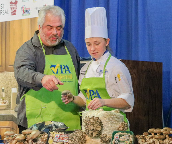 Among Farm Show demonstrators assisted by students were Chef Barry Crumlich (right), executive chef of the governor’s residence, and Gov. Tom Wolf.