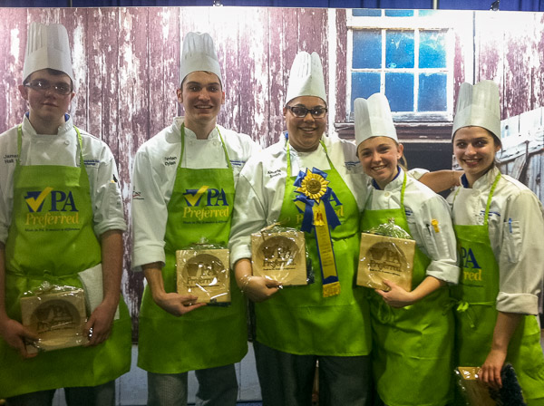 The victors of the School Cooking Challenge (from left): James S. Hall Jr., Dylan H. Therrien, Amaris T. Smith, Danielle M. McGuire and Tessa M. Stambaugh