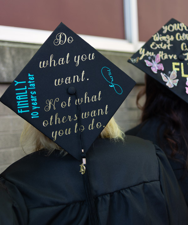 Vanessa N. Klees, nursing, incorporated her dog's pawprint into her cap design.
