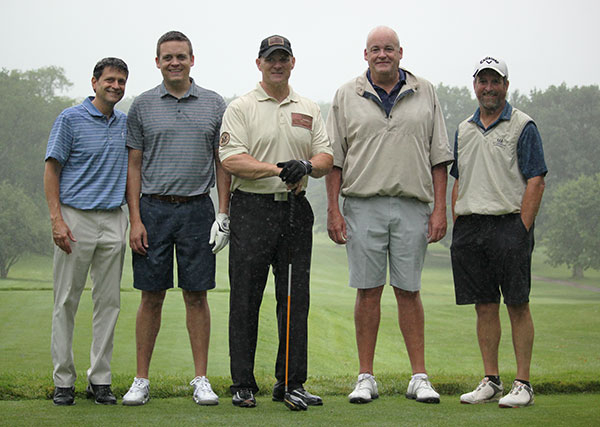 Brent Fish (right), of Fish Real Estate (among the day's player sponsors), celebrates with his winning foursome.