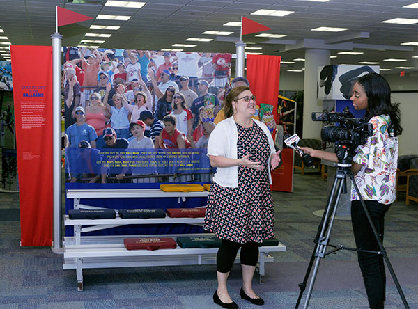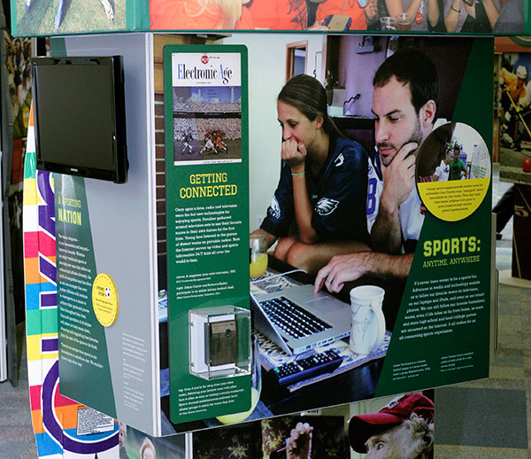 The Smithsonian's contribution includes such interactive exhibits as trivia questions on stadium seat cushions ...
