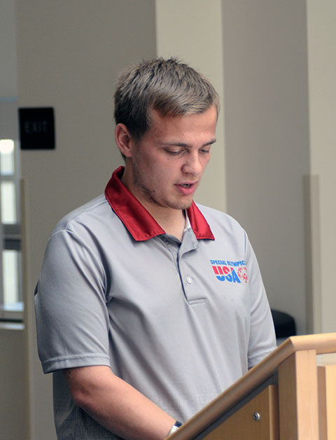 The day's keynote speaker was Aaron Keller, of Wapwallopen, who won several medals – including a gold in the 10K race – at the Special Olympics Summer World Games in Abu Dhabi. The Luzerne Countian inspired attendees in his brief remarks, noting that the competition's hosts in the United Arab Emirates consider the Special Olympians to be "determined" rather than "disabled."