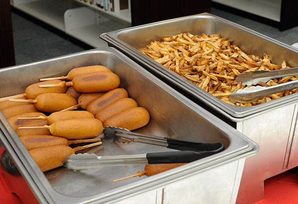 What's a sporting event without concession food? Dining Services filled the bill with a menu that featured corn dogs and french fries.