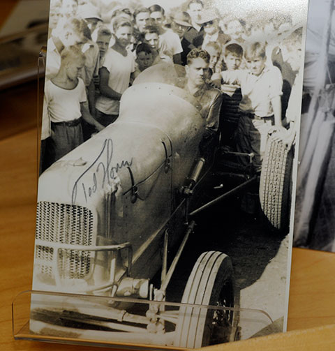 Decades of auto racing on the Hughesville Fairgrounds' dirt track is noted in this photo of Ted Horn, remembered as one of the best drivers to never win the Indianapolis 500 (despite 10 straight finishes in the top four).