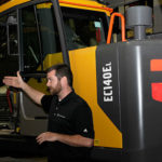 The link between Penn College students and the companies that eventually employ them was in direct evidence this past week, as a technical support manager for a leading Mid-Atlantic distributor of heavy construction equipment visited classes at the Schneebeli Earth Science Center. Dan Hensley, of the Baltimore-based McClung-Logan Equipment Co., spent Monday through Thursday in the diesel lab with tomorrow's technicians – whom he termed "the building blocks of the company" for keeping its extensive fleet in safe, efficient operation. Hensley's schedule was tailored to the topics taught in each of the 10 groups, from powertrains and hydraulics to emissions and air conditioning. McClung-Logan, representatives of which frequently attend Penn College's biannual Career Fairs, operates nine full-service locations throughout Delaware, Maryland and Virginia.