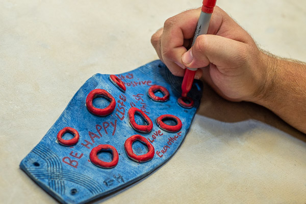 The ceramic masks feature a range of messages from lighthearted inspirations to deeply felt disappointments. Some lament the loss of cherished pastimes, while others celebrate newfound joys or thank essential workers. Many offer encouragement to keep pressing forward with safety protocols for the benefit of all.The initiative is the brainchild of David A. Stabley, instructor of ceramics and wood sculpture, who envisioned the art project as an emotional channel for students as they navigate the new terrain of a global pandemic.