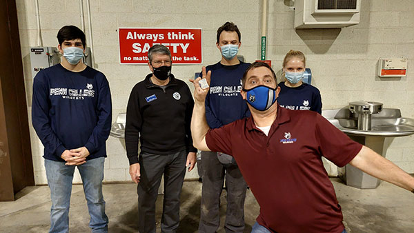 Weaver playfully disrupts a group photo of (from left) Michael J. Sormilic; Joseph C. Straw, assistant professor of diesel equipment technology; Justin D. Sandner and Olivia L. Miller. (Photo provided by Sormilic)