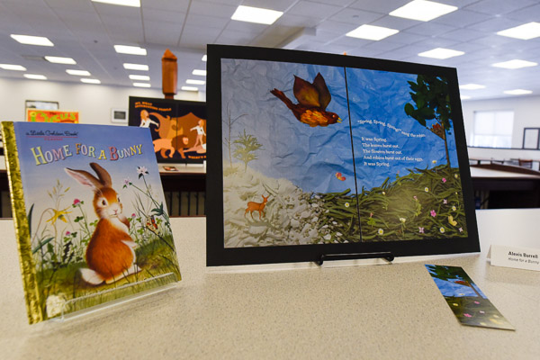Nicole S. Warner, archives and special collections librarian, helped to coordinate the project and said, “I loved having the opportunity to work with the graphic design department and the gallery for this display for many reasons, including seeing the potential and abilities of our students; but namely, I enjoyed it because introducing children to books at an early age is so significant to their mental, emotional and intellectual development, and for many people, myself included, Golden Books are really symbolic of those early literacy years.”