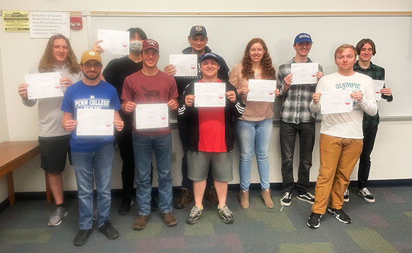 Passing the Certified SolidWorks Professional exam, proving advanced use of the software, were the following engineering design technology students: Morgan R. Bagenstose, Reading; Caleb J. Barackman, Weedville; William L. Buck, Williamsport; David J. Cadden, West Chester; Sydney M. Camut, Shippensburg; Matheu A. Davenport, Williamsport; Wesley S. McCray, Corry; Brandon Z. Williams, West Pittston; and Daniel T. Wright, McClure.