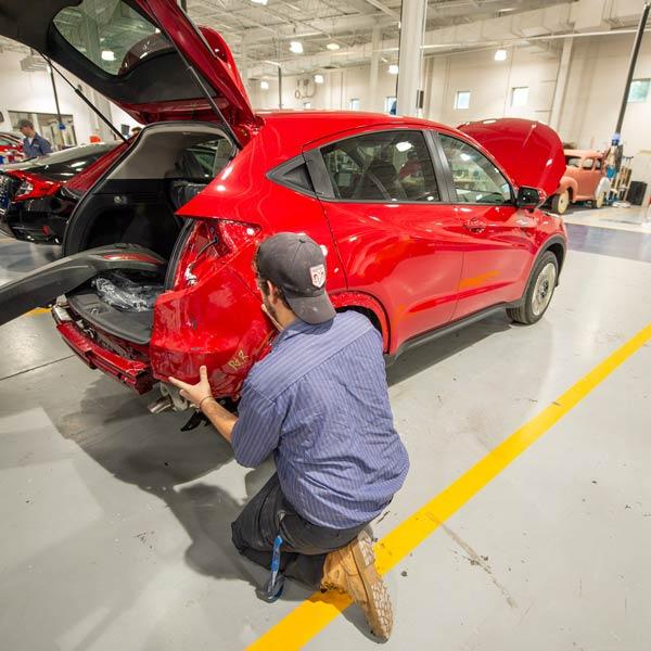 Get hands-on training with industry-standard techniques like refinishing, plastic repair, and structural and non-structural repairs.