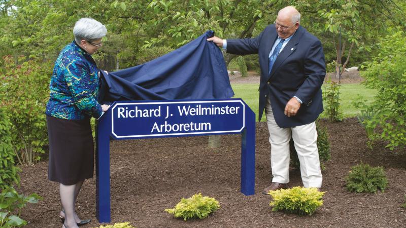 Richard J. Weilminster, the 1986 Master Teacher, came on board in August 1972, a year after the horticulture program was initiated by Wayne Ettinger, who had taught high school horticulture courses. At the time, there were only a few trees planted along the entrance drive to establish the arboretum, and the entire area was ungraded. (The arboretum added a conifer garden in 2006 and was named for Weilminster in 2008.)