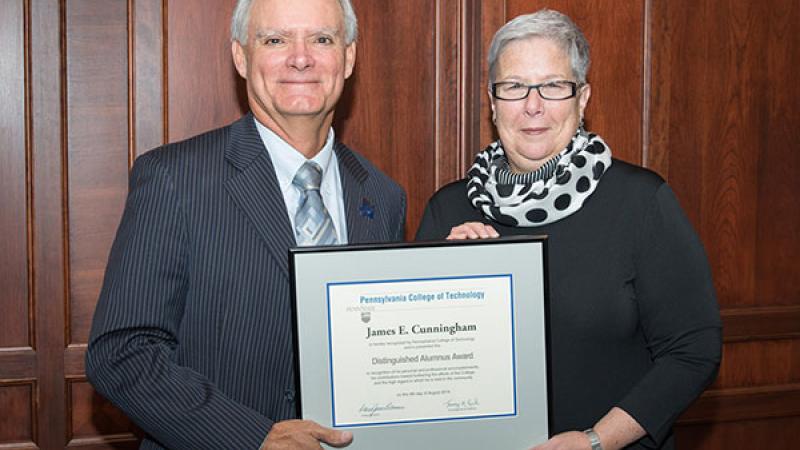 The path of my career brought me back to Penn College as an employee working in the Information Technology Services department and ultimately to my final role as a member of the college’s senior management team. In that role, I had many memorable moments; it is difficult to pick only one. I think the most memorable moment happened toward the end of my career. Shortly after I retired, I was honored to be selected for the college’s Distinguished Alumnus Award. The award was presented to me on stage by President Davie Jane Gilmour at a summer commencement ceremony, where I gave a few remarks in front of the graduating students and my entire family. A special day and special moment that I will never forget.