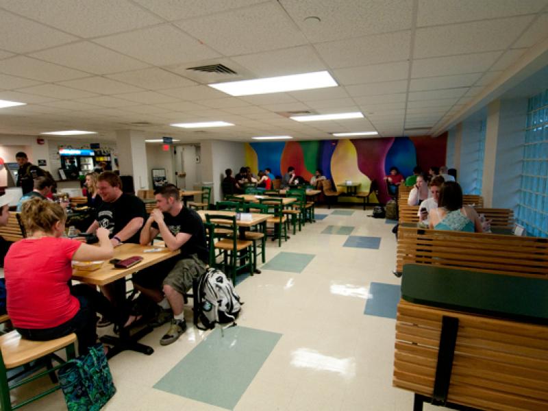 This Residence Hall dining room features a variety of home-style entrees, daily concept bars, pizza, burgers and grilled sandwiches, fresh salads, homemade soups and more for breakfast, lunch or dinner. Capitol Eatery also has an allergen-friendly kitchen to prepare meals for those with special dietary needs