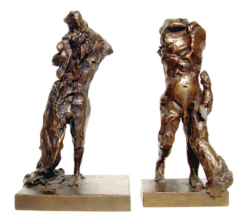Ed Smith's drawings and bronze sculptures are primarily involved with the mythic and heroic aspects of the Artist and man, reminding the viewer how to retain humanity in a world where oftentimes the wrong individuals are idealized. Traditionally, bronze figures served to commemorate the past, present and future, and prompted viewers to remember great deeds, great men or actions; they embodied the dreams and hopes of men, cities, states and countries. Smith's sculptures attempt to bring into focus what we overlook as well as to create a sense of historical continuity with the great art of the past. His drawings, depicting beggars of Venice, echo the tragedy of the homeless and depict characters very similar to Artists, being outsiders beyond the scope of conventions.