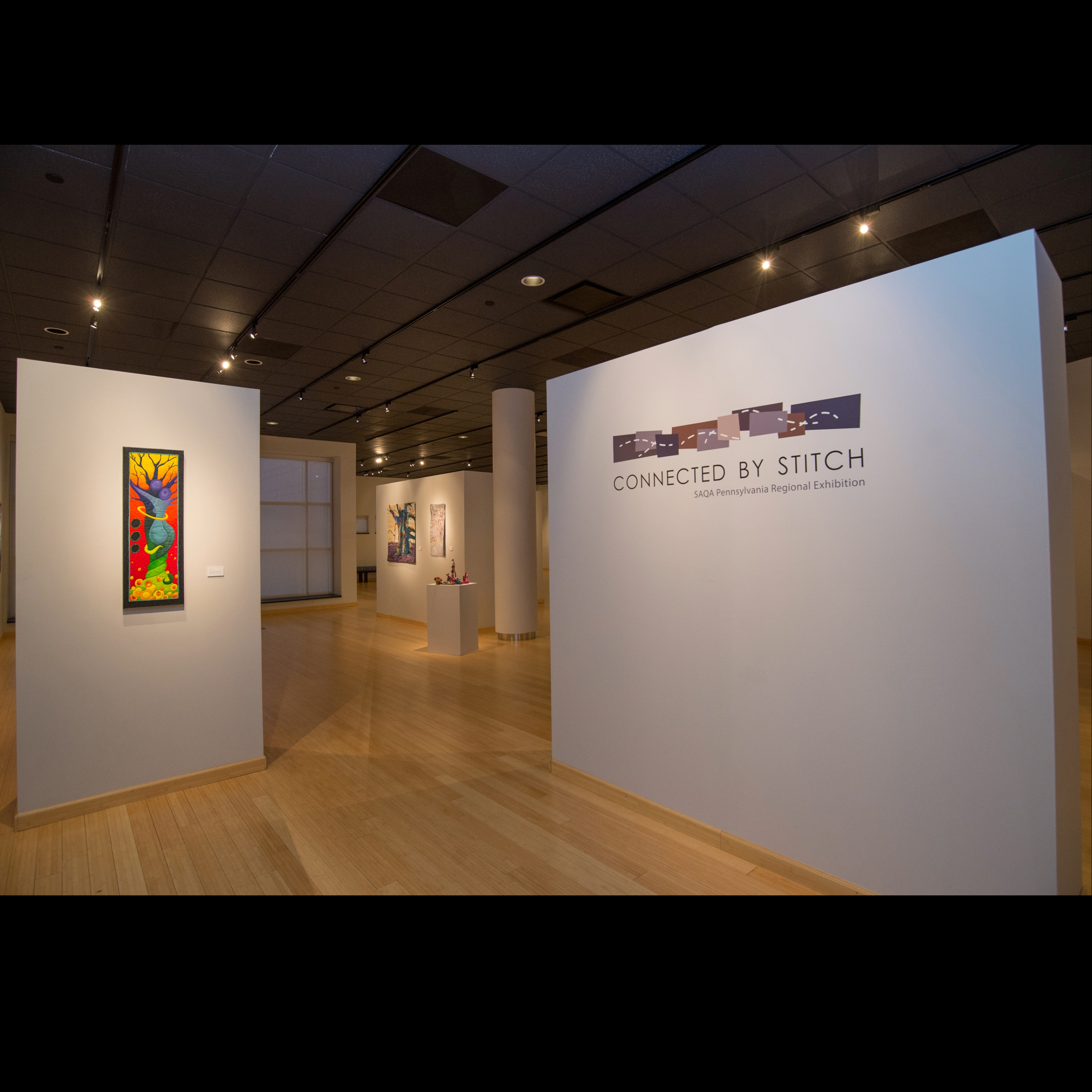 Connected by Stitch is a collection of fiber based artwork by Pennsylvania regional members of Studio Art Quilt Associates (SAQA). The juried exhibition showcases a wide range of 2D and 3D fiber art, and highlights the diverse styles and techniques of a medium that prioritizes aesthetic value over utility. Working with fiber stretches back to ancient times and has grown and developed across the centuries into a vibrant art form encompassing a variety of materials and processes from low to high tech. Today’s fiber artists create beauty, provoke thought, resist convention, and challenge the status quo.