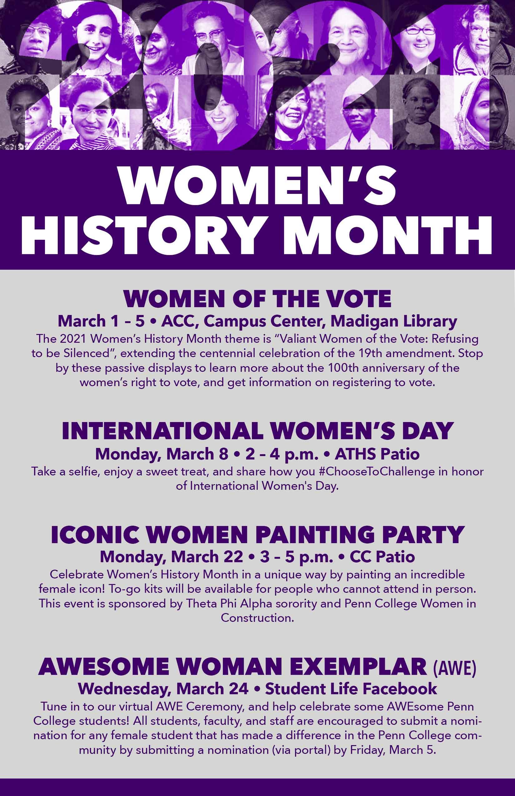 The 2021 Women's History Month theme is "Valiant Women of the vote: Refusing to be Silenced"
