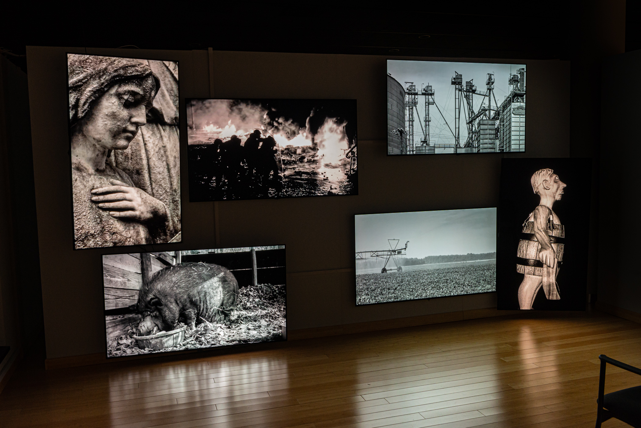 Transcending the limitations of the photographic medium, John Singletary creates multi-disciplinary installation experiences. Photographs are animated through synchronized state-of-theart organic LED panels, which serve as large format electronic canvases. Included in the exhibition is Anahata, an immersive experience that explores human relationships and their connection to the divine. Using an open-spectrum camera in a purpose-built, UV light studio, choreographed movements by dancers were captured to produce dream-like images steeped in archetypal symbolism, mythology and mysticism. A new, ongoing multimedia installation, Traces, is also on view. This series depicts the extraordinary light and darkness in the human condition through video, audio, digital and stop-motion animation, and historical footage.