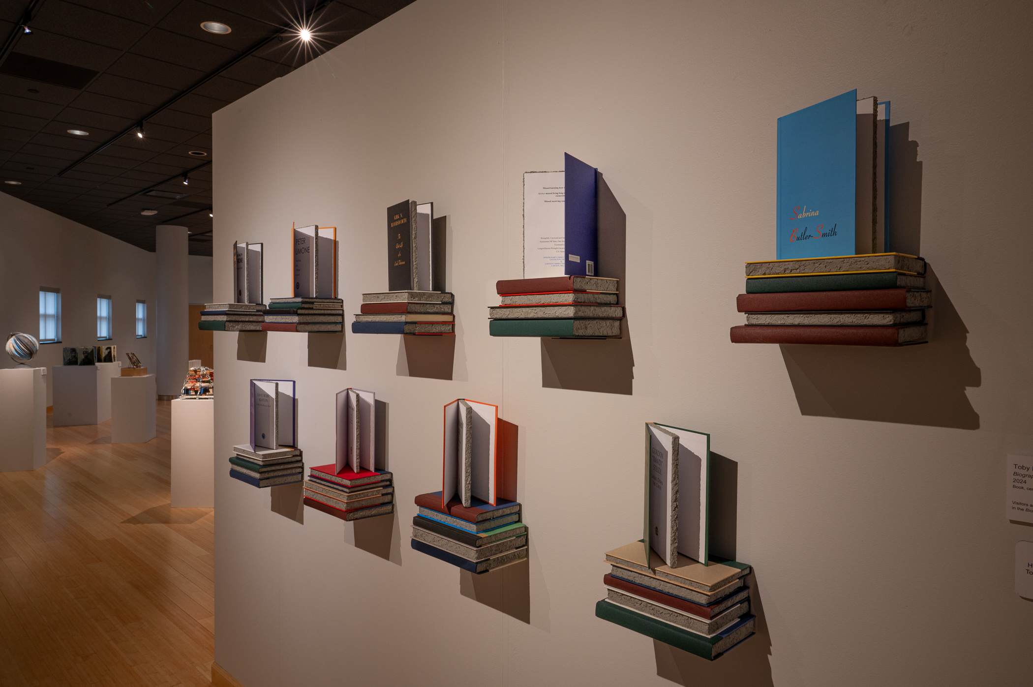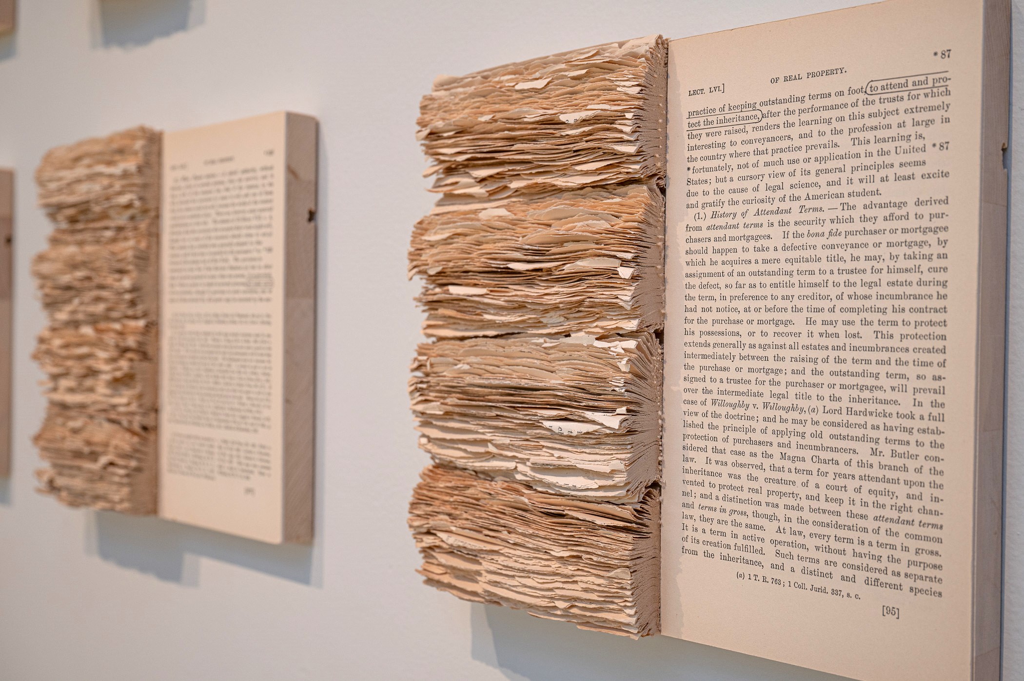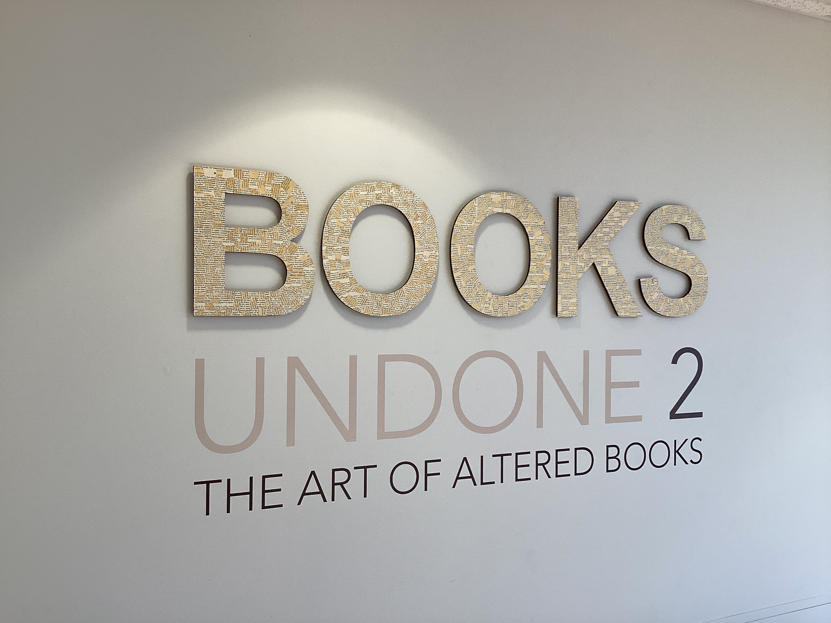 Books Undone 2 presents a diverse and compelling collection that captures our cultural time and place. Themes such as social justice, climate change, the human experience, and more are presented through book-based forms. From full-size dresses that scrutinize domestic violence to book installations that examine wrongful convictions, from erased books that bring awareness to the loss of natural ecosystems to sculptures that probe the loss of history, and from digital-based works that explore identity issues to intricately twisted book pages that investigate motherhood, the work is varied in form and concept.