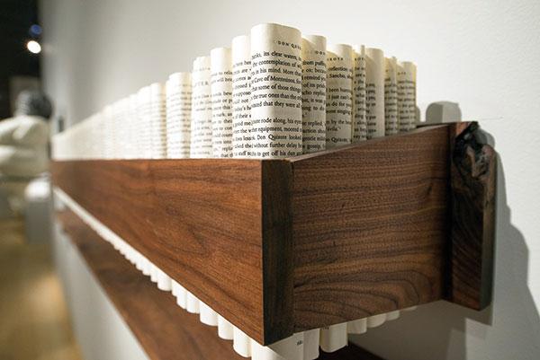 Visual art and books have much in common: They express and evoke emotions, educate, share new ideas, tell a story, and more. Such shared virtues make the book, as an art medium, powerful and complex. Thanks to Scott McCarney’s thoughtful selections, we present Books Undone 2: a diverse and compelling juried art exhibition that captures our cultural time and place. Discover themes such as social injustice, climate change, the human experience, and more through beautiful book-based forms. From full-sized dresses that scrutinize domestic violence to book installations that examine wrongful convictions in our country, from erased books that bring awareness to the loss of natural ecosystems to sculptures that probe the loss of history, from digital-based works that explore identity issues to intricately twisted book pages that investigate motherhood, the work is varied in form and concept.
