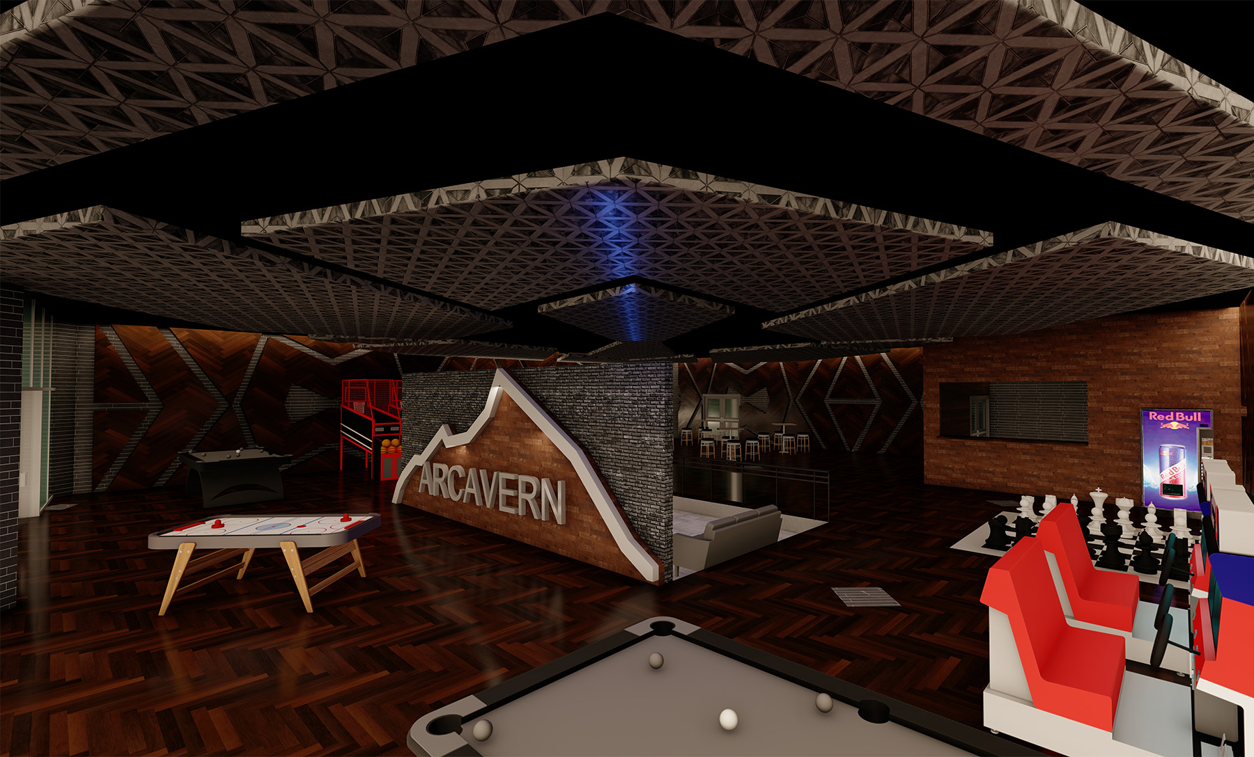 Rendering of the recreational game room on the second floor.