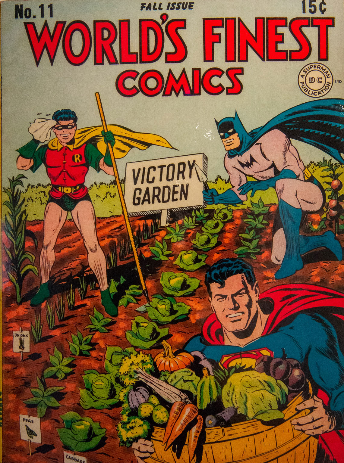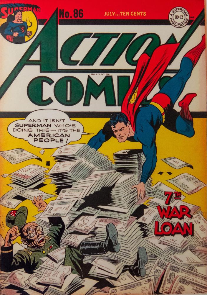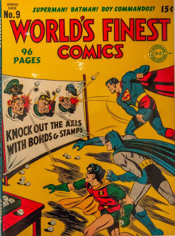 The top Superman artist throughout the war years was Hardin “Jack” Burnley, who worked for DC Comics from 1939 to 1947. Burnley is generally considered to be the first artist trusted by the publisher to draw Superman, Batman, or Robin after their creators. His first published artwork was the cover for World’s Fair Comics #2 (1940), the earliest comic to place that trio of heavyweights together on a cover. He also took a turn with the Superman and Batman Sunday newspaper strips. In 1941, along with writer Gardner Fox, Burnley created the superhero Starman in Adventure Comics. By the end of the war he had become, arguably, his employer’s top draftsman, having created iconic cover designs for Action Comics, Superman, Detective Comics, Batman, and Adventure Comics.