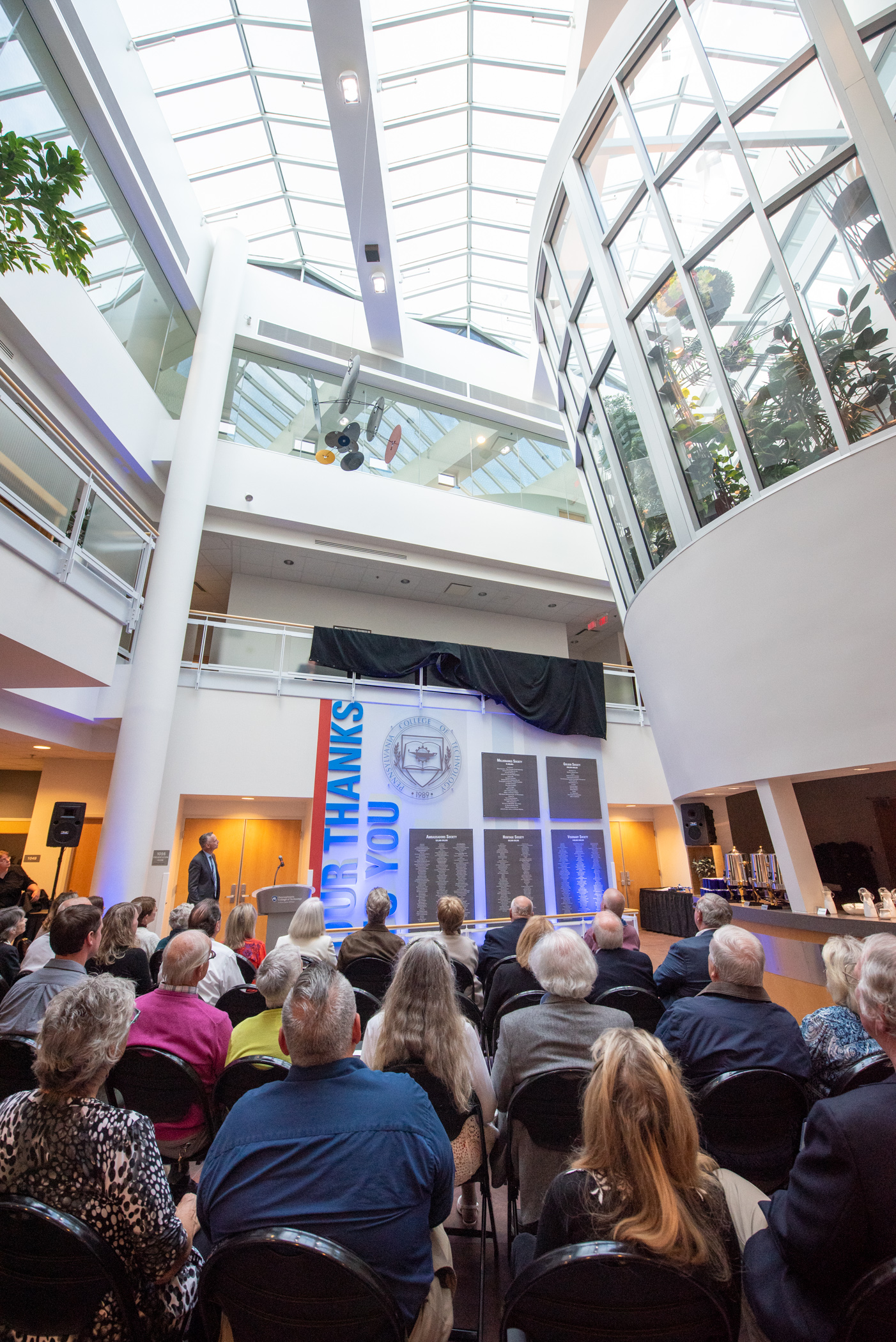The Donor Wall pays permanent tribute to individuals, families, organizations, and businesses who have made significant lifetime contributions of cash gifts and pledges, donations and entrustments of equipment and technology, as well as valued estate commitments in support of our students and programs. The Donor Wall honors cumulative giving since 1982 at five levels, beginning at the $25,000 Ambassadors Society and ranging up to the Millionaires Society.