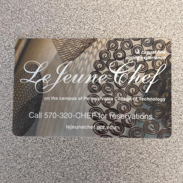 Give the gift of an elegant meal. Contact Le Jeune Chef Restaurant at 570-320-2433 to purchase a gift card.