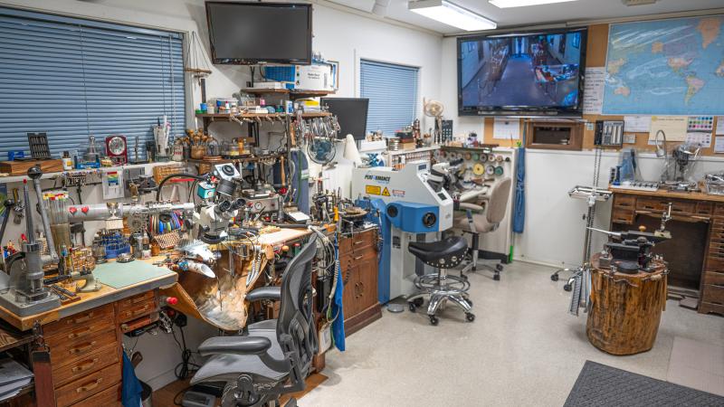 A large chunk of Smith’s time is spent in a lab devoted to countless repair and restoration projects, requiring his unique blend of historical expertise, dexterity and technical savvy. This is where he spent 36 hours enameling to repair gold that had been crushed on one of the 57 surviving Fabergé jeweled eggs made between 1885 and 1917, created a commissioned replica of an ornate watch key owned by George Washington, and restored gold work on an emerald ring recovered from the 1622 Nuestra Señora de Atocha shipwreck off Key West.