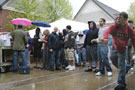 RA Adam Sillaman emerges from the dunk tank 'Villapalooza' draws about 150 students for outdoor activities RA Rachell Hall shows off the event T-shirt 'Ember' performs outside The Village at Penn College Tuesday's rain didn't dampen the sixth annual "Villapalooza," as about 150 students attended the event organized by Village Resident Assistants Amanda Miller, Rachel Hall, Marisa Labosky, Sarah Landis, Adam Sillaman, Doug Bloom and Spyke Krepshaw. RAs at Penn College's residence-hall complexes regularly team up for large-scale spring events, and "Villapalooza" has been a campus tradition since 2001. This year's event featured the band, "Ember," whose lead singer, Joseph Bloom, is Doug's brother. Other activities included a pig roast anda "Dunk Your RA' tank. ( Photos by Phillip C. Warner, student writer/photographer)