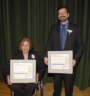 Honored for excellence in part-time teaching were Michaeleen G. "Mickey" McNamara, instructor of psychology, and Bruce A. Wehler, instructor of English/speech communication.McNamara became an adjunct faculty member in 2004, adding to 35 years in health care and counseling. Her student nominator applauded her ethics, credibility, accessibility and passion, stating: "Mickey has so much respect for the profession of teaching because she's so passionate about her work. I would love to see her get this award for all the dedication she has put into teaching and in her field."