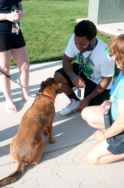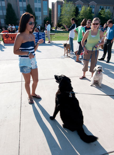 Faculty/staff dog owners brought their pets to Rose Street Commons from 5-7 Tuesday night for the second annual "Hot Dog, You're Here!" program. The well-attended event offered a unique opportunity for employees to welcome and engage first-year students over the common ground of pet ownership, conversation and free food.