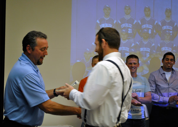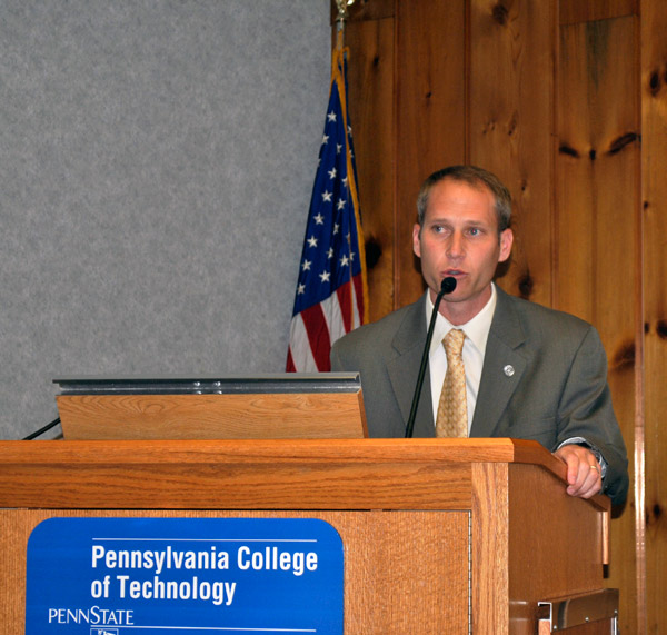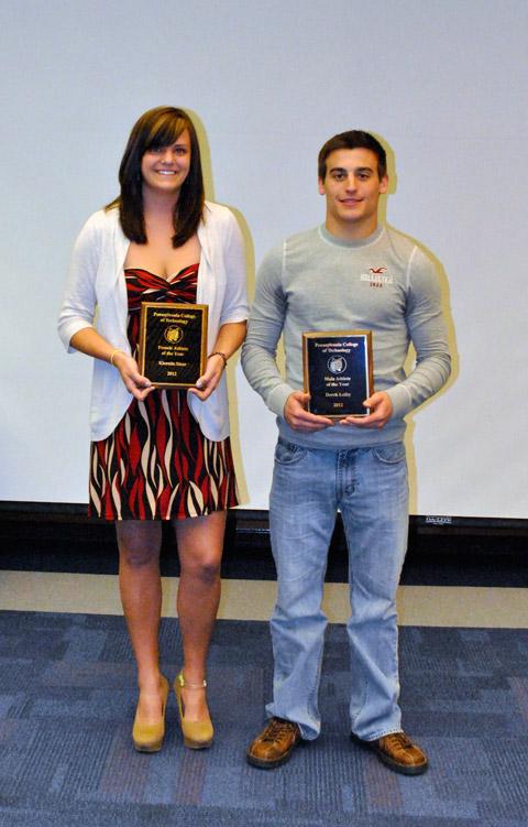 The Spring 2012 Athletic Banquet was held Sunday in the Mountain Laurel Room of the Thompson Professional Development Center, honoring Penn College's student-athletes for accomplishments both on the court/field and in the classroom. Scott E. Kennell, athletic director, gave opening remarks, and coaches took to the podium to honor their respective squads. Baseball coach Chris Howard announced that the Wildcats have received a bid to the United States Collegiate Athletic Association national tournament in Illinois, many of the archery team members received multiple honors, and in a first for the college a female and male "Athlete of the Year" were selected: Kierstin G. Steer, a basketball scoring leader and two-time selection to the Penn State University Athletic Conference All-Conference First Team, and Derek D. Leiby, an All-American member of the PSUAC champion wrestling team.