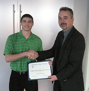 The scholarship, renamed in 2007 to honor a longtime member of the CCC team, rewards superior academic achievement by its recipients.“Aaron continues to make us proud through his growth as a student and his recognition by industry for his accomplishments,” said Colin W. Williamson, dean of transportation technology.