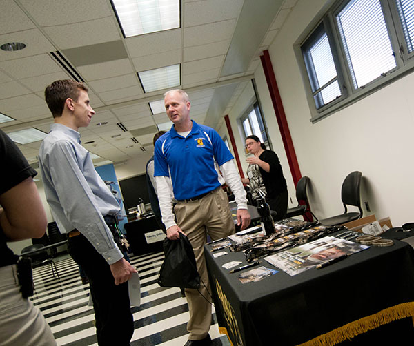 Job-seeking students busily work both sides of the aisle, ascertaining the best possible fit for their Penn College-honed skills.