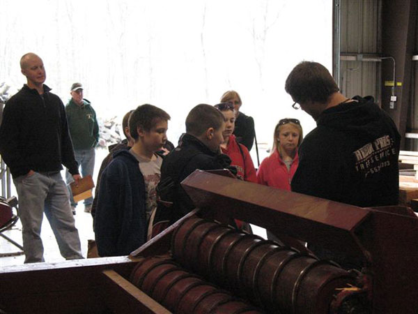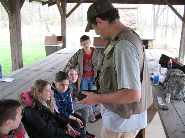 More than 50 fifth-graders from the Montgomery Area School District traveled Wednesday to the nearby Schneebeli Earth Science Center, where Penn College students were waiting to enlighten (as well as entertain questions from) their consistently inquisitive visitors. "I'm going to be taking more steps today than I usually do," predicted one youngster, embarking on his Earth Day-themed adventure in the School of Natural Resources Management's 400-plus acres of scenic woodland. "I'm going to be seeing trees, birdhouses, eagles and wildlife," another offered. "Can't wait!" Forestry professor Dennis F. Ringling, who annually coordinates the interactive event, maintains that his students should have sufficient command of their subject matter to share it with others – a responsibility not lost on the forest technology majors who staffed a series of information stations throughout the ESC campus. "It made me feel good to be complimented by one of the elementary teachers on my knowledge and teaching skill," said Jonathan M. Huey, of Woodward. "I enjoyed passing along what I've learned these past two years, and it was a good experience working with young and energetic students."Photos by Carol A. Lugg, coordinator of matriculation and retention, School of Natural Resources Management