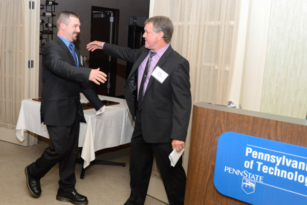 Many of the alumni attending the horticulture celebration – including 2000 landscape/nursery technology grad Ryan E. Buckwalter – welcomed their reunion with faculty retiree/mentor Richard J. Weilminster.