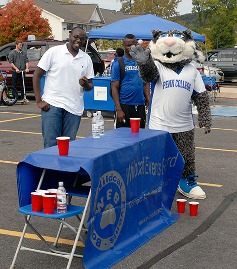 Is that a wildcat? No, it's a black cat named Sebastian, belonging to Ryan Steer ('13, plastics and polymer engineering technology). While Steer was participating in the Alumni Frisbee Game, Sebastian made the rounds with Braden T. Conner (left), a sophomore in automotive technology from Reading; Jamie L. Steer, a former human services student and Ryan's sister; Cortney Swinehart, ('13, mass media communications), from South Williamsport; and Jamie Larson, a friend.