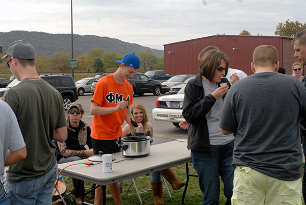The Penn College Diners Club took the $100 first prize for its chili recipe. Serving samples and greeting patrons are (from left) Benjamin A. King, Lewis D. Robinson, Eileen Harrington and Katlyn J. Hackling.