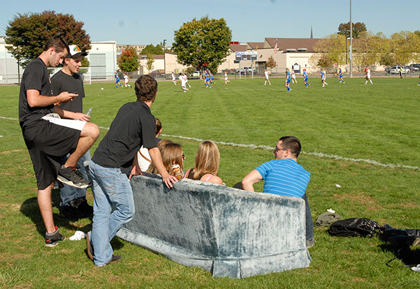 What to do when metal bleachers are so uncomfortable? You bring a touch of the TV room to the sidelines ...