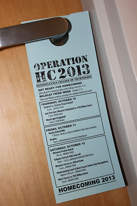 A door hanger alerts the campus community to the variety of activities.